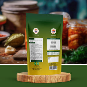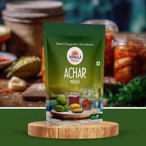 Pickle masala is blend of spices with a recipe that have been handed down over generations that provides home-made taste in every bite. Our achar masala is produced to provide you the ideal combination of flavour and aroma using fresh, natural ingredients. You may enjoy the depth of flavour and freshness that only home-made achar can offer with us, achar masala. Achar is now easier to make at home without becoming tedious. There is no need to add additional ingredients or spices because Vruj achar masala is a perfect fusion of all the aromatic spices. Your achar will be prepared quickly if you simply follow the straightforward recipe on the back of the packet.