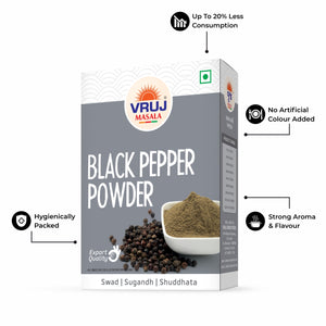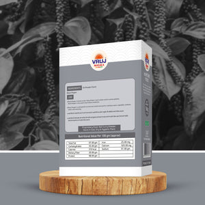Vruj Black pepper powder has a strong, pungent flavour that is described as spicy and slightly floral. It is a versatile spice that is used in numerous cuisines around the world. It is commonly added to savoury dishes like soups, sauces, and marinades to enhance the flavour and add a subtle heat. It is believed to have antioxidant properties that can help protect the body against free radicals, which can damage cells and contribute to aging and disease.