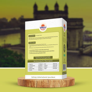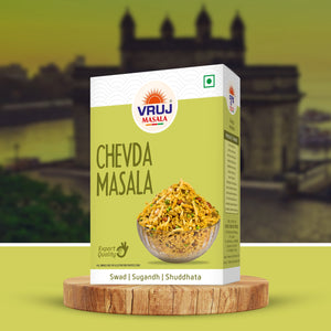 Chevda Masala is a popular spice blend used in Gujarati snack 'Chevada'. It is primarily used to seasoning Chevda, a popular Gujarati snack made from a mixture of fried ingredients like puffed rice, nylon flakes, corn flakes, peanuts, lentils, and spices. The spices in Vruj Chevda Masala add a tangy, spicy, and savoury flavour to the snack and elevating its taste. Chevda Masala can also be used to enhance the flavour of other snacks or dishes like mixtures, salads, and even roasted nuts.