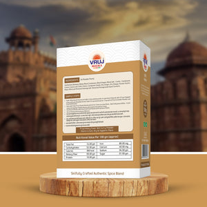 The Vruj Chhole Masala powder is added to the curry while cooking to infuse it with its distinct flavours. It gives the dish a rich and robust taste, along with a warm and earthy aroma. The spices in chhole masala are known for their digestive properties, making the dish not just delicious but also beneficial for digestion.