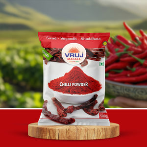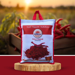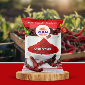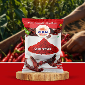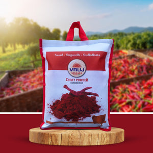 Vruj Chilli powder is a spice made from dried and ground chilli. It is commonly used in cooking to add heat and flavour to dishes. Chilli powder can vary in spiciness depending on the type and amount of chilli peppers used.