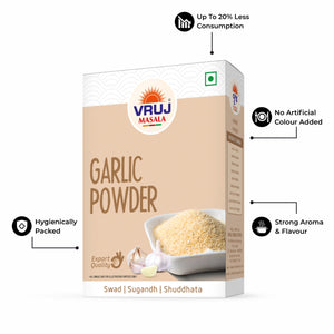 Vruj Garlic Powder is made with 100% garlic. It features no colouring or preservatives, so you get to enjoy the pure garlic taste without any added chemicals or salt.