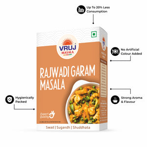 Vruj Rajwadi Garam Masala is a popular Indian spice blend that is known for its rich and aromatic flavour. It is typically used in Rajasthani cuisine and is made by grinding together a combination of whole spices.