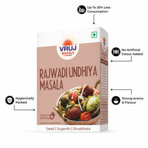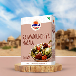 Rajwadi Undhiya masala is a flavourful and aromatic spice blend commonly used in Gujarati cuisine. It is a popular winter delicacy that is made during festival seasons like Uttarayan (Kite festival) in Gujarat, India. Our Vruj Rajwadi Undhiya masala is the key ingredient that gives your dish its distinct taste and aroma.