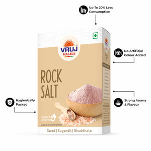 Vruj Rock Salt powder is commonly used as a cooking and baking. It can be sprinkled onto dishes to add a salty flavour, similar to regular table salt. However, due to its larger grain size, rock salt powder may have a more intense and distinct taste compared to regular table salt. It is also used in the process of making homemade ice cream, as it reduces the freezing point of water and helps create a smoother texture.